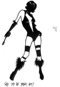 Besonders die sehr selbstbewusst, geradezu unseriös wirkenden Pistolen oder Gewehre tragenden Superfrauen in Schwarz-Weiß-Technik äußerst filigran gearbeitet, erregen das Gemüt des Betrachters. Die Beschränkung auf die beiden Farben Schwarz und Weiß mag als Hinweis verstanden werden, wie undifferenziert schwarz oder weiß das Frauenbild in der Medienwelt unserer Zeit dargestellt wird.