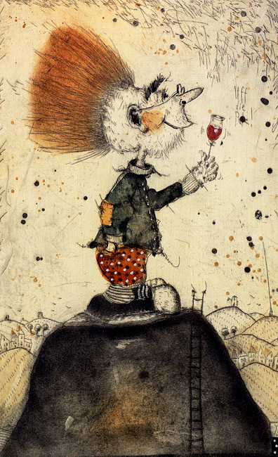 Xaver Mayer: "Auf die Zukunft", 2006, Farbradierung von drei Platten. Foto: Xaver Mayer