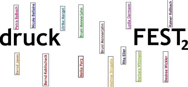 Auf Grund der Corona-Gesundheitslage und den aktuell vorliegenden Empfehlungen, auf alle nicht unabwendbaren Sozialkontakte möglichst zu verzichten, hat der Vorstand des BBK Rheinland-Pfalz entschieden, die Druckvorführungen im Rahmen des Projekts druckFEST2 an diesem Wochenende nicht stattfinden zu lassen und sie auf einen späteren Zeitpunkt zu verschieben. Über einen Ersatztermin für die Veranstaltung werden wird informiert.