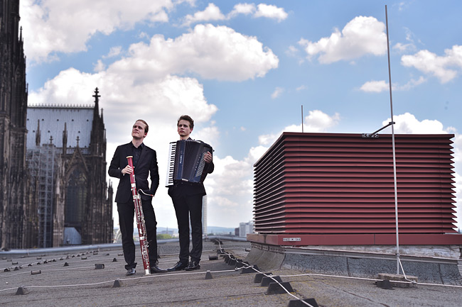 Julius Schepansky und Mathis Kaspar Stier vereinen mit der Besetzung Akkordeon und Fagott zwei Exoten, die zusammen ein noch nie gehörtes Programm entstehen lassen: Eine Fusion aus furiosen Solostücken und interagierenden Duos. Alle Bearbeitungen stammen vom Duo.