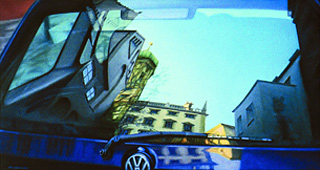 Jörg Koltermann beschäftigt sich in seiner Malerei seit Jahren mit dem Phänomen der Reflexion - etwa Spiegelungen im Autolack, in gewölbten Scheiben oder im Wasser -, dem "Bild im Bild".