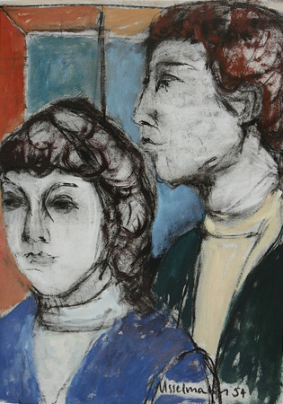 Elisabeth Mack-Usselmann: "Geschwister", 1954, Öl auf Karton