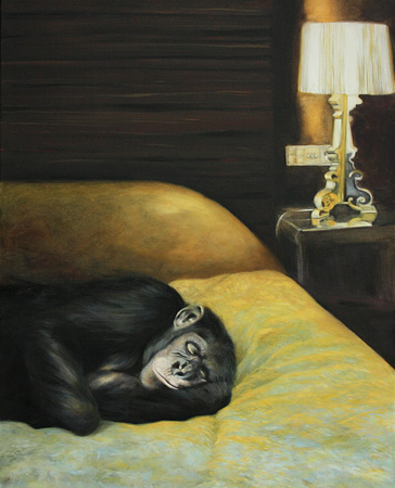Elke Steiner: "Lorenzo in der Luxussuite" (2009), Öl auf Leinwand, 100 x 80 cm
