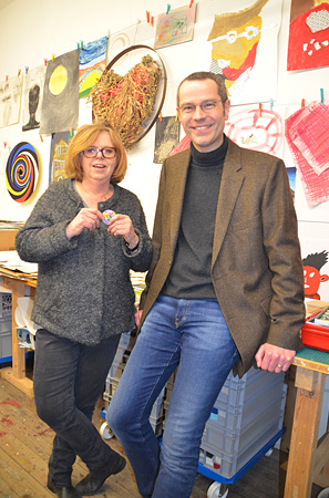 Bürgermeister Dr. Maximilian Ingenthron mit kuk-Leiterin und Kunstpädagogin Renate Vollmar. Foto: Christine Schön