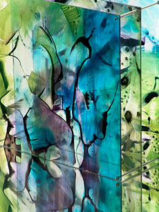 Unter dem Thema "Farbräume" stellt die Künstlerin Objekte aus Acrylglas sowie Malerei auf Leinwand aus. Präsentiert werden Objekte aus mehrteiligen Acrylplatten mit transparenter Farbigkeit. Diese stehen hintereinander auf Spiegelpodesten oder sie werden zu transparenten Bildvorhängen.