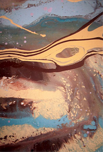 Um die Verwandlungen und die spontan entstandene Dynamik in den Bildern zu verstärken, wurden auf den überwiegend in Acryl auf Leinwand gemalten Werken Kunstharzstreifen aufgebracht, welche sich kontrastreich verbinden, so dass eine zusätzliche Spannung zwischen Bild und Betrachter entsteht. Gleichzeitig wird die Qualität der Einzigartigkeit verstärkt und in neue Assoziationsräume bis zur Unendlichkeit verwandelt.