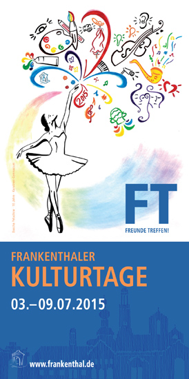 Detaillierte Informationen zu den Frankenthaler Kul-turtagen können dem Programmheft entnommen werden, das an zahlreichen Kommunikationsstellen ausliegt und auch online abrufbar ist (siehe unten). Das Programmheft trägt auf der Titelseite das Siegerbild der diesjährigen Siegerin des Plakatwettbewerbs, den die Stadtverwaltung an den hiesigen Schulen ausgeschrieben hat: Dascha Petuchow vom Karolinen-Gymnasium.