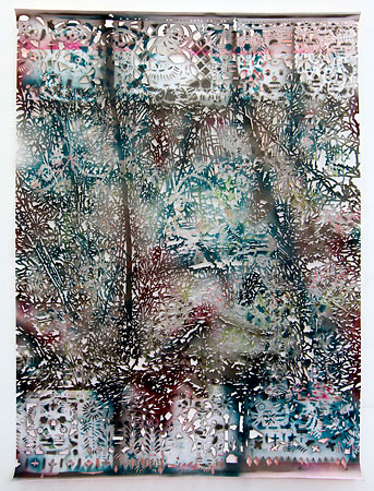 Gabriele Basch: "buehne VII", 2013, Lack auf Papierschnitt, 189 x 133 cm. Foto: Marcus Schneider
