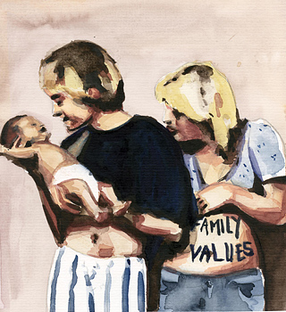 Mutter, Vater, Kind. Mit etwas Ruhe und lauter Stimme ausgesprochen, stellen sich unwillkürlich Erinnerungen ein. Kann man diese drei Worte denken, ohne involviert zu sein, ohne, dass sich ein 'mein' dazwischen schiebt? Gabriele Lutterbeck und Damaris Odenbach berühren in ihrem für Landau entwickelten Ausstellungsprojekt RADIX auf kritische wie spielerische Weise verschiedene Aspekte der Familie. In einem Dialog unterschiedlicher Medien - von einer Videoinstallation über Aquarelle nach Familienfotos bis zu spurenreichen Objekten - befragen die Werke die vielschichtigen Ebenen des kulturell, politisch doch stets auch persönlich geprägten Themas. Dabei knüpft die Präsentation der in Köln und Berlin vertretenen Künstlerinnen an die besondere Historie des Frank-Loebschen Hauses an.