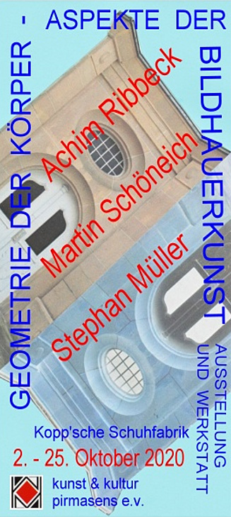 Die diesjährige Herbstausstellung des Pirmasenser Kunstvereins stellt in den hervorragend für dreidimensionale Kunst geeigneten leerstehenden Hallen der ehemaligen Schuhfabrik KOPP unter dem Motto "Geometrie der Körper" (A. Ribbeck) drei relevante und auch gegensätzliche Positionen zeitgenössischer Bildhauerkunst vor.