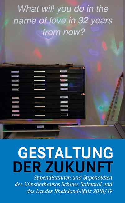 Die Stipendiat*innen des Künstlerhauses Schloss Balmoral setzten sich 2018 mit dem Thema "Gestaltung der Zukunft. Wie wollen wir leben, lieben und arbeiten?" auseinander. Auch das Kunstschaffen der Stipendiat*innen des Landes Rheinland-Pfalz, die in ihrer Themenwahl frei waren, tangiert diese Frage.