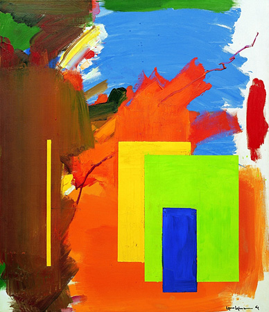Zu dieser Tradition stand er, auch als es nach dem Zweiten Weltkrieg wenig angesagt schien. Er hatte in Paris an den Akademien "de la Grande Chaumière" und "Colarossi" studiert, sich in der Künstlergruppe um das Café du Dôme bewegt und Kontakt zu Künstlern wie Matisse, Picasso, Braque, Delaunay und Derain gepflegt. Zu seinen Vorbildern zählte neben Henri Matisse vor allem Wassily Kandinsky, wobei ersterer ihn vor allem in Bezug auf seine Farbgebung und letzterer in seinem besonderen Verständnis von Geistigkeit geprägt hat. Sein Frühwerk spiegelt diese Einflüsse, während er von den späten 1950er Jahren an, als er von seinen Aufgaben als Lehrer entbunden war, großartige, räumlich hochinteressante Gemälde voller Bewegung und Spannung malt. In der von ihm entwickelten Technik des "push and pull" baut der Künstler in kraftvoll farbige, informell oder organisch angelegte Malflächen monochrome Rechtecke von unterschiedlicher Farbigkeit ein. Sie reißen die optische Einheit der Bilder auf und versetzen sie in eine virtuelle Bewegung. Hans Hofmann kann mit diesen Werken als Vorläufer der Op Art, also als visionärer Künstler gelten.