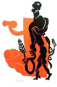HAP Grieshaber: "Der Ringer", Holzschnitt, ca. 30 x 40 cm