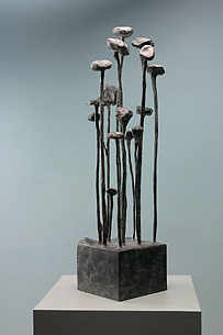 Eine Faszination des Sowohl-als-auch, die sich ebenso bei den verschiedenen, schlicht "Landschaft" betitelten Bronze- bzw. Papier-Plastiken fortsetzt. Felder von abgestorbenen Sonnenblumen bilden zwar streng stilisiert ein "nature morte"-Motiv, doch gleichzeitig wohnt diesen Pflanzen die Kraft möglicher Erneuerung inne.