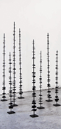 Heike Jobst: "wooden memory", 2011, Papier, Holz/Metall, Lack, Höhe 158 cm, Anzahl und Ausdehnung variabel