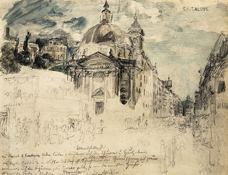 Heinrich Bürkel: "Römische Straßenszene", undatierte Öl-Bleistift-Skizze auf Papier. Sammlung: Stadt Pirmasens