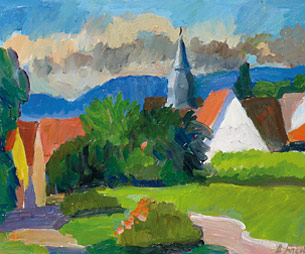 Heinz Friedrich: "Kleinfischlingen", 2009, Öl / Karton , 24 x 30 cm