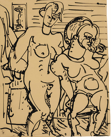 Porträts, weibliche Akte und Landschaften sind Motive, mit denen sich Hofmann immer wieder beschäftigte. Der serielle Charakter dieser facettenreichen Zeichnungen betont Spontaneität und Experimentierfreude des Künstlers. Zunächst waren es akademische Aktzeichnungen in klassischen Posen, die Hofmann nutzte, um die Beziehung von Figur und Raum auszuloten. Auch in den darauffolgenden Porträt- und Landschaftszeichnungen, die in der zweiten Hälfte der 1920er-Jahre in München und während seiner Sommerkurse in Saint-Tropez entstanden sind, spielte die Raumfrage eine zentrale Rolle. Umriss und Fläche, Licht und Schatten, Figürlichkeit und Abstraktion bestimmen auf sensible und zugleich nachdrückliche Art und Weise die Entwicklung einer von der Natur inspirierten Arbeitsweise, die sich zunehmend in Richtung formaler Reduktion und Abstraktion bewegte. Die Ausstellung des mpk zeigt diese interessanten Wege, die zugleich auf das spätere malerische Werk des deutsch-amerikanischen Pioniers Bezug nehmen.