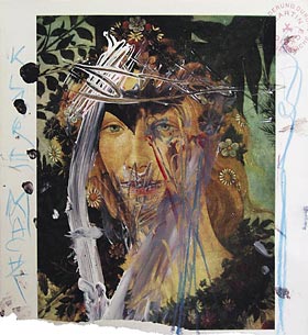 Hauptsächlich aus Übermalungen besteht dagegen Martin Eckrichs Anteil an der Ausstellung. Ohne Rahmen an die Wand gehängt, blähen und wölben sich die wohl bewusst nicht sachgerecht getrockneten, roh und unbeschnitten belassenen und mit Artikeln und Abbildungen aus Kunstbüchern, Kunstkalendern und sonstigen Publikationen beklebten Blätter, auf denen man buchstäblich alles und nichts entdecken kann. Kühe und Kamele, das Gesicht des "Frühlings" von Botticelli, geschnitzte Madonnen, kitschige Heiligenfiguren, Pharaonen und archaische griechische Köpfe, kombiniert mit gekritzelten, meist unleserlichen Kommentaren. Alles scheint eins in diesem wilden Kosmos der Belanglosigkeit, beziehungsweise gleichgemacht und gleichermaßen wild mit Farbe traktiert oder buchstäblich ausgestrichen.