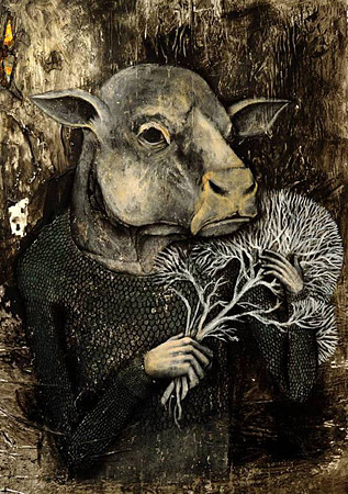 Dominik Schmitt: "Baumrind", 2013, Mischtechnik auf Leinwand, 100 x 70 cm