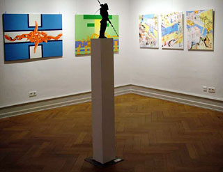 Das Spektrum reicht dabei von den fotorealistischen Aquarellen Katrin Pepers bis zur abstrakten Malerei Ralph Gelberts, von Portraits in Öl von Markus Watta bis zu Alexander Habisreutingers phantastisch-expressiven Mischtechniken in der Tradition eines Hieronymus Bosch. Auch Skulpturen sind vertreten, beispielsweise drei Bronzeplastiken Peter Brauchles, die sich zur Kriegergruppe "Garotscha" formieren, und Florian Peris´ Bison aus Baustahl und Draht, das in Richtung Objektkunst geht. Der Teilnehmerkreis umfasst sowohl "Newcomer" als auch Künstlerinnen und Künstler, die sich durch eigene Ausstellungen bereits ein überregionales Renommée erworben haben.
