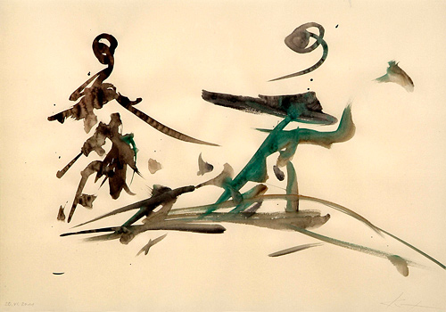 Klaus Fresenius: "Begegnung", 2011, kalligrafisch, Aquarell, Foto: Gerhard Kayser