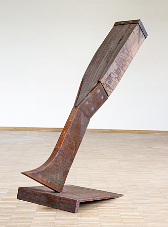 Die Skulpturen aus Holz und Eisen von Franz Bernhard geben ihre anthropomorphe Grundhaltung nicht ohne weiteres preis. Die Naturformen sind abstrahiert und stehen dem Geometrischen ebenso nahe wie dem Organischen.