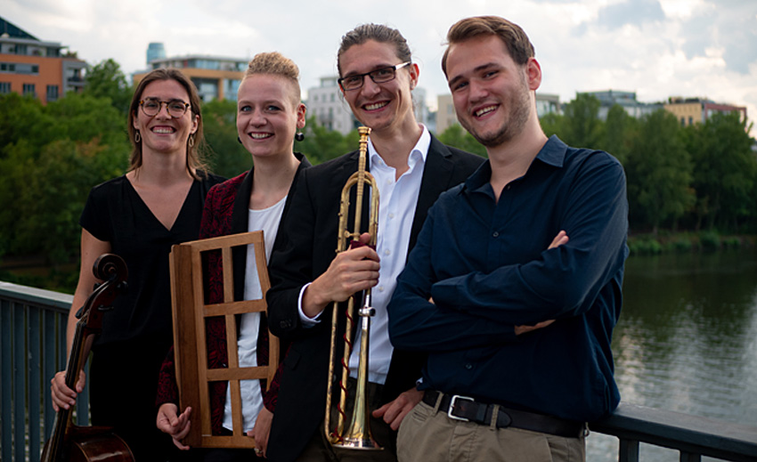 Die jungen Musikerinnen und Musiker sind Sandro Hirsch, Trompete, Tim-Lukas Reuter, Bass, Leonie Maier, Cello und Ortrun Sommerweiß, Cembalo.