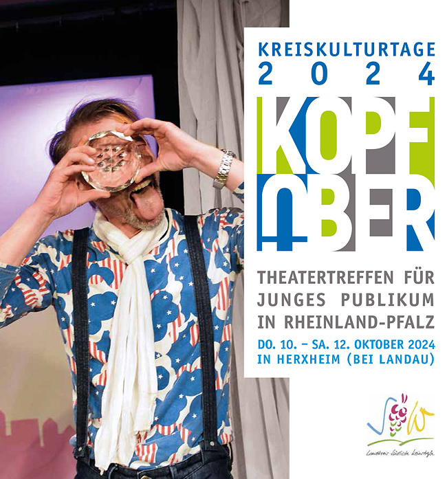 Dieses Festival findet jährlich an wechselnden Orten im Land statt und präsentiert die freie professionelle Jugendtheaterszene in Rheinland-Pfalz. Dieses Jahr sind außerdem Produktionen aus Frankfurt und sogar eine zweisprachige Ko-Produktion aus Deutschland und Iran zu sehen. Angesprochen sind alle Altersklassen. Für jedes Stück besteht eine Altersempfehlung, zum Beispiel ab vier Jahren oder ab 15 Jahren. Teils schließen sich Publikumsgespräche an die Aufführungen an und ein Workshop lädt Kinder zum allerersten Theaterbesuch ein.