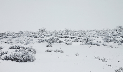 Der Betrachter fragt sich: Sehen wir also tatsächlich das, was da ist? Oder sehen wir viel eher Gedachtes, Imaginiertes, Gefühltes, Erinnertes? Landschaft, genauer gesagt Landschaftsausschnitte, wie zum Beispiel Gebirgszüge, Hügelketten, Wälder, Büsche oder Wasser sind Motive, die die Künstlerin als Mittel verwendet, um die eigene Existenz, das eigene Selbst zu befragen und damit auch den eigenen Lebensraum. Neben menschenleeren Außenräumen sind auch verlassene Interieurs dargestellt. In der zwischen 2010 und 2011 entstandenen Serie "ghostskin" rückt Catalina Pabón zerknitterte Decken ungemachter Doppelbetten ins Zentrum der Wahrnehmung. Die detailreich ausgearbeiteten Faltenwürfe erinnern etwa an Strukturen einer flachen Landschaft, die eine reliefartige Oberfläche bildet. Wir begegnen in der Ausstellung verfremdeten Welten, die zwischen irdischer und kosmischer Präsenz changieren.