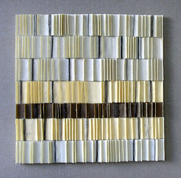 Die textilen Wandobjekte von Birgitta Hüttermann entstehen ebenfalls in einem recht aufwändigen Arbeitsprozess. Es ist eine Stoff -Wachs-Technik. Haptische und optische Reize der "Brüche", wie bei der Batiktechnik, entstehen durch unterschiedlich starke Wachsaufträge, wobei Bienenwachs aus dem Elsass und Parafin auf Stoff aufgetragen werden.