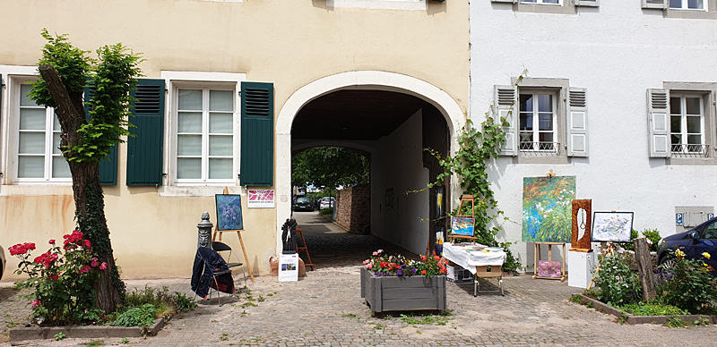 Unser Bild zeigt den Eingang in die Art-Galerie am Schloss in Bad Bergzabern, Schlossgasse 3, das zu den letztjährigen Rosentagen der Stadt Bad Bergzabern aufgenommen wurde.