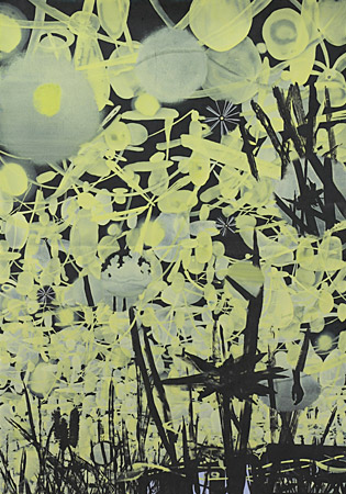 Klaus Lomnitzer, geboren1971, freischaffender Künstler. Lebt und arbeitet in Frankfurt. Seit mehreren Jahren verwendet Lomnitzer die PVC-Folie in seiner Malerei, um die Struktur seiner Werke im wahrsten Sinne transparent zu machen. Zum einen sind die Rückseiten und oft auch die Vorderseiten der PVC-Folie bemalt. So ergibt sich ein Zusammenspiel zwischen den Farbebenen. Inhaltlich ergibt sich durch das Miteinander verschiedener Zeichen- und auch Bedeutungsebenen auch ein Dialog.