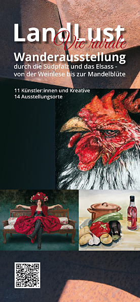 Wir laden Euch ein zu einer kleinen Rundreise durch eine der schönsten Regionen Europas. Im ländlichen Raum der Südpfalz zeigen wir an idyllischen, historischen sowie modern sanierten Orten die Arbeiten von 11 Kreativen zum Thema "LandLust". Ein Thema, das sich durch die Kunstgeschichte zieht und gerade wieder sehr aktuell wurde. Mit unterschiedlichen Stilmitteln werden die vielfältigen Facetten des Lebens außerhalb der großen Städte aufgefächert - ihre bezaubernden Seiten ebenso wie ihre kritischen Aspekte. Die Akteure haben sich im Rahmen der Zentrumsmanagementarbeit von Bad Bergzabern als Image AG gefunden. Sie bleiben gemeinsam als "Die Gruppe" weiter aktiv und ziehen dabei größere werdende Kreise, selbstverständlich in nachbarschaftlicher Verbundenheit mit Frankreich und anderen Kunstschaffenden.