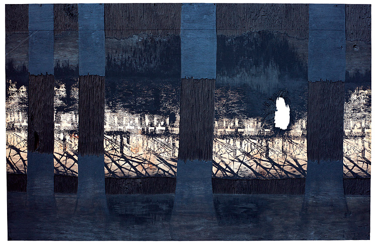 Lena Schmidt (Hamburg) fertigt Bilder auf Holz und in Holz. Dabei entstehen mit Hilfe der Axt, Sticheln und Hobeln eindrückliche Bildräume. Durch verschiedene Tuschen und unter Berücksichtigung der Struktur des Holzes gestaltet die Künstlerin zeitlose Räume, Erinnerungsbilder und nachtwache Momente.