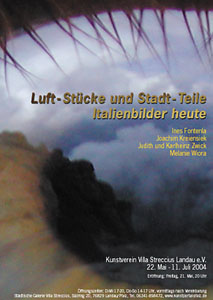 Das Projekt des Kunstvereins Villa Streccius zum Kultursommer 2004 zielt auf eine Erfahrung, welche wie kaum eine andere unsere westliche moderne Kultur- und Kunstgeschichte geprägt hat: Reisen nach Italien als spirituelle Expansion sowie Initiation und Steigerung künstlerischer Wahrnehmung. Die Entwicklungsgeschichte der Menschheit ist durch Wandern und Nomadentum geprägt, womit Topoi wie: "das Leben ist eine Reise", kaum mehr eine spezifische Aussage beinhalten.
