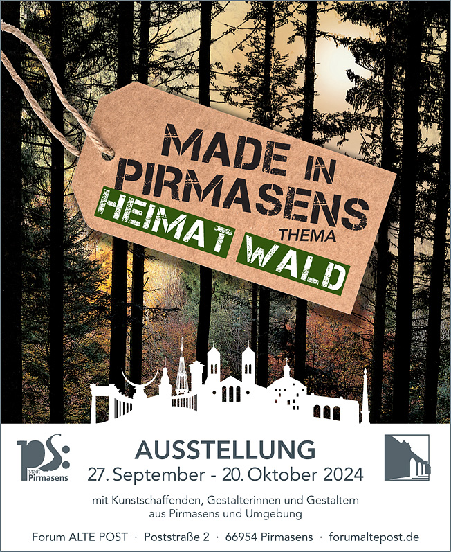 Wie schon 2022 und 2023 hat das Forum ALTE POST in Pirmasens auch in diesem Jahr wieder alle Amateurkünstler aus Pirmasens eingeladen, sich mit ihren Werken an der Sonderausstellung "Made in Pirmasens" zu beteiligen. Inspiriert von der malerischen Lage der Stadt am Tor zum Biosphärenreservat Pfälzerwald lautete dabei in der 3. Auflage das Motto "Heimat Wald" - und wie schon bei den vorangegangenen Veranstaltungen gab es auch 2024 wieder zahlreiche Einreichungen. So erwarten das Publikum im Pirmasenser Kulturzentrum insgesamt 106 Arbeiten von 41 Künstlern aus Pirmasens sowie der nahen und weiteren Umgebung. Zu sehen ist ein erfreulich breitgefächertes Spektrum an individuell gefertigten Kunstwerken, das von Gemälden, Skulpturen und Fotografien bis hin zu Kalligraphie und Makramee reicht.