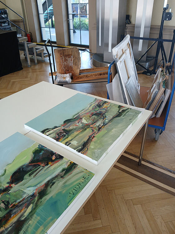 Eine Möglichkeit zum Austausch gibt es am letzten Ausstellungstag, am Sonntag, 20. Oktober. An diesem Abend werden einige der ausstellenden Künstler vor Ort sein, es besteht für die Gäste die Gelegenheit zu persönlichen Gesprächen mit ihnen und über ihre jeweiligen Arbeiten.