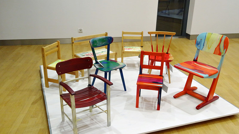 Jugendliche des Berufsvorbereitungs-Projektes MalerWERKSTATT an der Erlichschule zeigen farbig gestaltete Möbel, entstanden unter der Anleitung der Künstler LEE und Dieter Schramm. Weiterhin geben LEE und Dieter Schramm Einblick in ihre Arbeit: "Künstlerisches Denken als soziale Aufgabe".