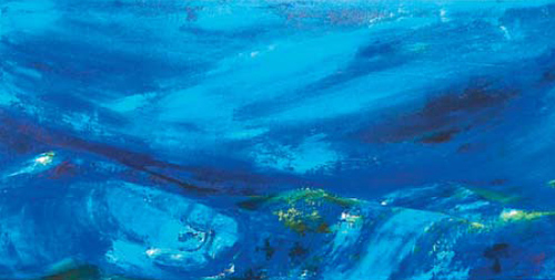 Ihre Ausstellung in der Kreisgalerie umreißt Manuela Schwarz-Thomas mit den Worten: "Ein Ort, ein Tor - Eintauchen in die Anderswelt - die dich aufnimmt und nur schwer wieder gehen lässt. Meine Malereien und Zeichnungen zum Thema 'Anderswelt' entstanden an magischen Orten aus Stein, der Präsenz der Natur und das Ja zum Sein."
