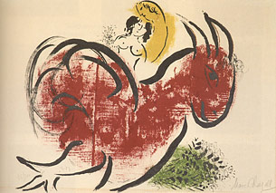 Es ist eine Traumwelt, die uns Chagall offenbart, bevölkert von Liebespaaren, Fabelwesen, mythologischen und biblischen Figuren sowie einer Vielzahl verschiedenster Tiere. Immer auf dem schmalen Grat zwischen purer lieblicher Narration und ernster, symbolschwangerer Gesellschaftsmetaphorik. Auf dem schmalen Grat zwischen purer Fiktion und künstlerischer Wunschsicht einer realen Gesellschaft.