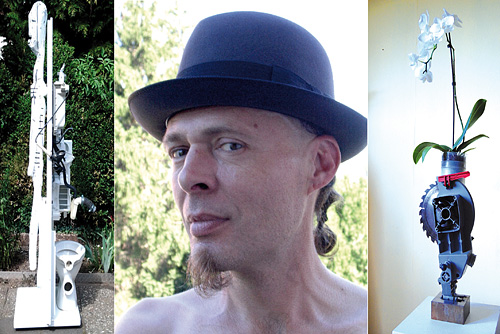 "Unser Planet wird immer kränker", sagt Marc Reibel "und der Mensch will den toten Mars zur zweiten Erde machen. In 20 bis 30 Jahren sollen Leute dorthin fliegen und dauerhaft leben können, so die Planung. Aus diesem Grunde habe ich Pflanzen mit Teilen von mechanischen Geräten kombiniert und in Kunstwerke aus Holz und Stahl integriert. Ob Blumen oder Gemüse, alle Bepflanzungsmöglichkeiten sind denkbar. Auch die Belebung von Kunstobjekten mit Insekten, Amphibien oder anderen Tierarten ist durchaus praktikabel. Hochinteressant gestaltet sich der Kontrast zwischen den Komplexen: die lebenden, bunten, organischen Formen und die strengen industriellen Linien der Trägerbehälter. Es ist ein spannendes Experiment. Durch das Wachstum oder den Austauschen der Pflanzen verändert sich die Aussagekraft der Kunstwerke. Auch die Tiefsee ist unerforscht und mindestens so geheimnisvoll wie der Mars. Auch sie ist Inspirationsquelle für meine Arbeiten. Manchmal gestalte ich sie als kabellose Lichtobjekte aus geschmolzenem Stahl und anderen Metallen - in Kombination mit LED-Leuchtkörpern und Bewegungsmeldern die meine Objekte als bio-lumineszierende Kreaturen darstellen. Andere Kunstwerke bestehen aus Wander-Seeanemonen, die auf poliertem und lackiertem Wurzelholz und auf Mikados montiert und mit Golftees bestückt werden. Als Kontrast präsentiere ich neue Skulpturen aus subfossiler Moor-Eiche. Es sind archaisch reduzierte Formen, ähnlich den Steinen oder Felsen in der Wüste oder an der Küste die von Wind, Sand und Wasser gestaltet wurden."
