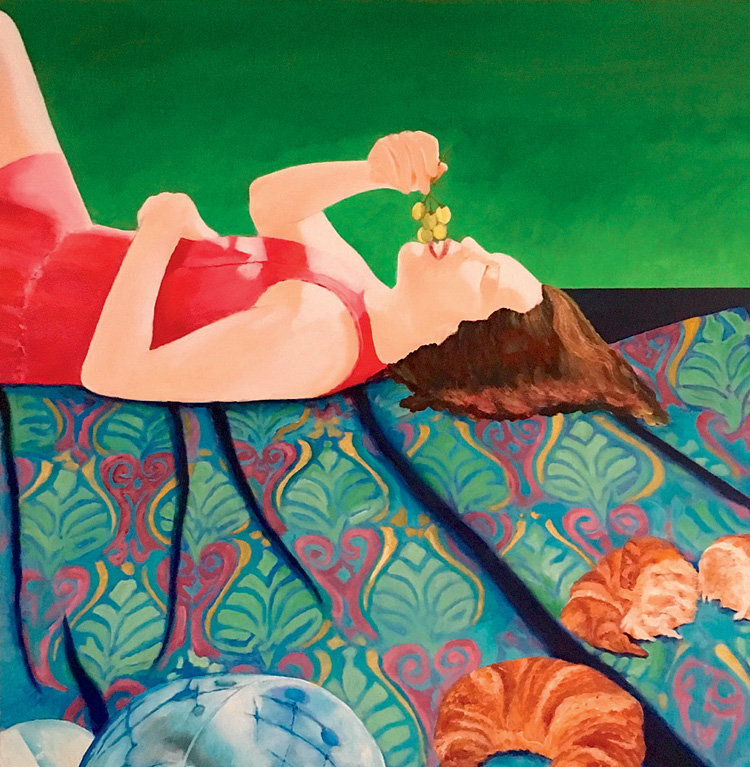 Margarete Stern: "Frühstück im Freien" (Ausschn.), 2015, Acryl/Vinyl/Leinwand, 100 × 130 cm