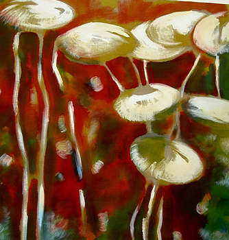 Der Akt des Malens bedeutet für Marie-Hélène auch ein Akt des Suchens, um etwas zu finden was sie selbst noch nicht kennt, sie jedoch erahnt, dass es mit ihr etwas zu tun hat. Farben fließen ineinander, tropfen dann durch die Leinwand hindurch, werden schließlich miteinander vermengt, bewegt, gerührt bis sie dann letztendlich erstarren. Wie lautet doch der Satz ihres Lehrers an der Hochschule der Künste in Berlin: "Na dann, mach mal......". Somit erkennen wir, dass die Künstlerin ihre Erwartungen und ihre Arbeitsergebnisse, den Zwängen und Verkettungen des Handelns unterwirft. Auslöser gibt es für ihre Arbeiten wie sie sagt viele, und hat auch zu diesem Zeitpunkt schon eine Entscheidung stattgefunden, soll die Bildidee noch vage und offen bleiben. Und wie wir wissen darf auch der Zufall bei Marie-Hélène Desrue nur unter Aufsicht mitspielen. Sie ist als Malerin vergleichbar mit einer Forscherin. Immer in der Erwartung dessen, was sie wohl beim Malen finden und entdecken wird. Meine sehr verehrten Damen und Herren, tauchen sie heute gemeinsam mit der Künstlerin Marie-Hélène H-Desrue ein in deren fantastische Bildräume, wo die Inhalte von außen her gewonnen werden, die Formen aber, in denen diese Erfahrungen ins Bewusstsein dringen, aus dem Sinnesarchiv stammen und Objekte uns begegnen, die den Raum zu durchbrechen scheinen. Wie beschrieb die Künstlerin 2009 in dem kleinen Folder "...oder wenn die Zeit den Raum bestimmt" ihre Arbeiten: Schweben - fallen - stürzen - fliegen.
