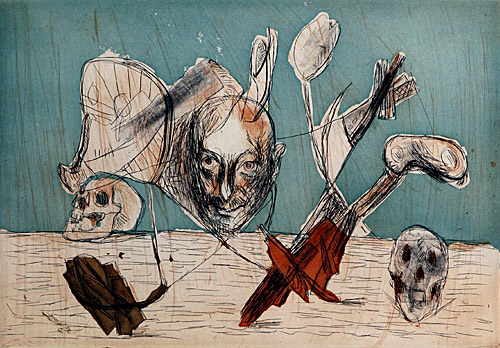 Markus Lüpertz: "Spanische Serie, Skull II", Farbradierung