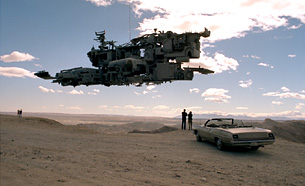 Soviel zu den Bildern, die hier zu sehen sind. Nur noch einige klärende Sätze zu den Werken, die Sie im Feuerbachhaus sehen können. Es handelt sich da um die Serie der "UFO's": Unidentified Fotografic Objects (nicht Flying Objects). Das ist ein Sprachspiel Liebschers, das seinen in ganz vielen Arbeiten deutlich zu erkennenden Humor bei der künstlerischen Arbeit offenbart. Zu sehen ist auf jedem Bild eine Art "UFO", das vor einer meist sehr bekannten Städtekulisse wie Frankfurt oder New York heranschwebt. Nach dem Klonen also schon wieder so ein Szenario, "Hilfe, die Außerirdischen kommen!" Doch diese Szenerie kann - welche Erleichterung - voll dem Bereich Science Fiction zugeschlagen werden - es sei denn, jemand glaubt fest an die Marsmännchen, soll es ja geben.