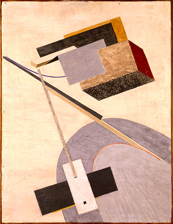 El Lissitzky: " Proun 23 N (B 111)", 1920/21, Tempera, Bleistift, Leimfarbe und Materialauftrag auf Holz, 59 x 45,7 x 2,4 cm, Sammlung Wilhelm-Hack-Museum