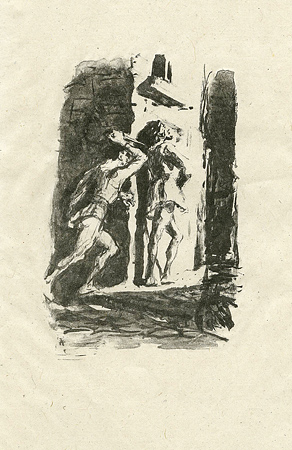 Mit der bedeutenden Vorzugsausgabe des Werkes besitzt die Grafische Sammlung des mpk ein herausragendes Beispiel der Zeichenkunst des großen deutschen Impressionisten. Im Auftrag des Berliner Verlegers Bruno Cassirer hat Slevogt die von Goethe übersetzte Autobiographie Cellinis mit rund 300 Originallithographien illustriert, die 1911/14 von dem berühmten Meisterdrucker Auguste Clot in Paris gedruckt wurde. Es ist eine der beeindruckendsten Unternehmungen der modernen Buchillustration. Die Lebenserinnerungen des Florentiner Goldschmieds und Plastikers sind ein vor Vitalität strotzender kulturhistorischer Stoff aus der Zeit der italienischen Renaissance und des Manierismus sowie das Bild eines künstlerischen Menschen in seiner schöpferischen Unrast. Neben einer Auswahl von rund 50 Lithographien werden mehrere Entwurfsskizzen, die ebenfalls zum Bestand der Graphischen Sammlung gehören, in der Ausstellung gezeigt.