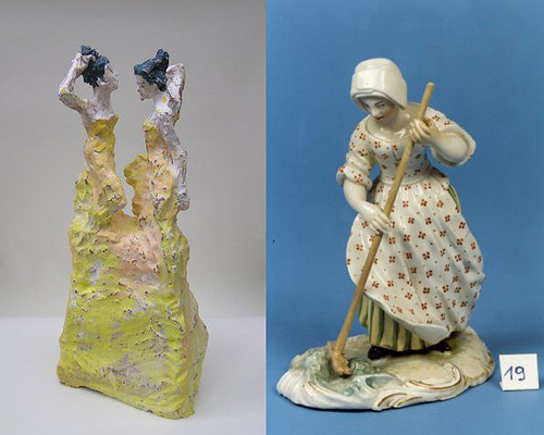 Der Kunstverein präsentiert in der ungewöhnlichen Gegenüberstellung filigrane Beispiele Frankenthaler Porzellans aus der Fix-Stiftung gemeinsam mit Keramiken von Nathalie Schnider-Lang und Plastiken von Petra Weiner-Jansen aus Gossersweiler. Bildmontagen mit Zeichnungen von Stefan Kindel nach einem barocken Kreuzweg begegnen textilen Kreuzweg - Objekten von Birgitta Hüttermann. Voré nutzt barocke Architekturfragmente für seine eigens für die obere Rotunde der Villa inszenierte Bodeninstallation. Passend hierzu zeigt Hans-Jürgen Büssow Fotografien mit barocken Motiven aus der Festungsstadt.