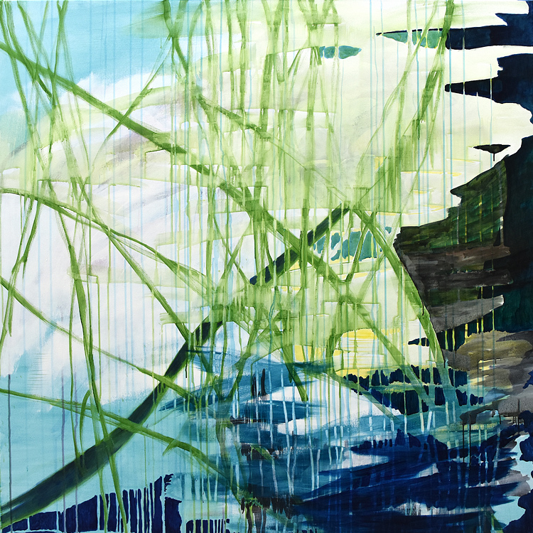 Nicole Bold: "rheinnotation (lento), 2021, Aryl und Öl auf Leinwand, 120 x 120 cm